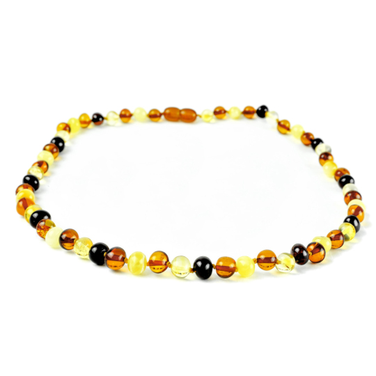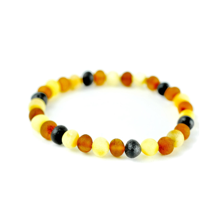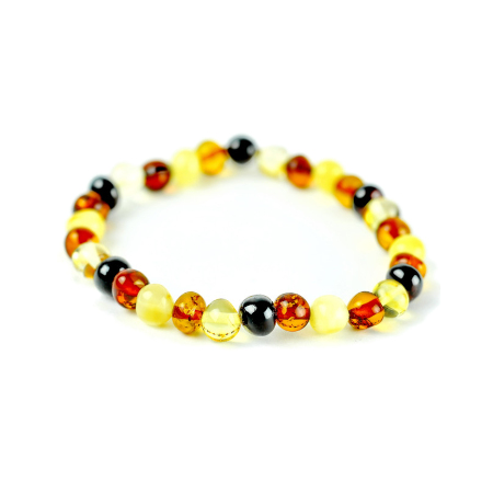 Bracciali in ambra baltica per bimbi in tenera età. Le popolazioni passate credevano nelle capacità lenitive per i fastidi nei bambini durante il periodo della dentizione, per le infiammazioni alle vie respiratorie ed alla tiroide, ed, inoltre, che aiutasse contro i reumatismi ed i dolori alla schiena.