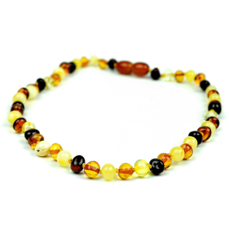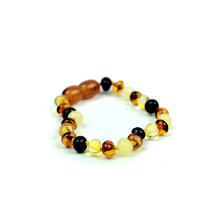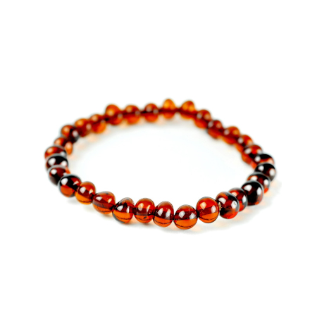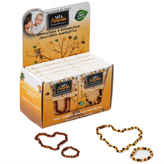 Bracciali in ambra baltica per bimbi in tenera età. Le popolazioni passate credevano nelle capacità lenitive per i fastidi nei bambini durante il periodo della dentizione, per le infiammazioni alle vie respiratorie ed alla tiroide, ed, inoltre, che aiutasse contro i reumatismi ed i dolori alla schiena.